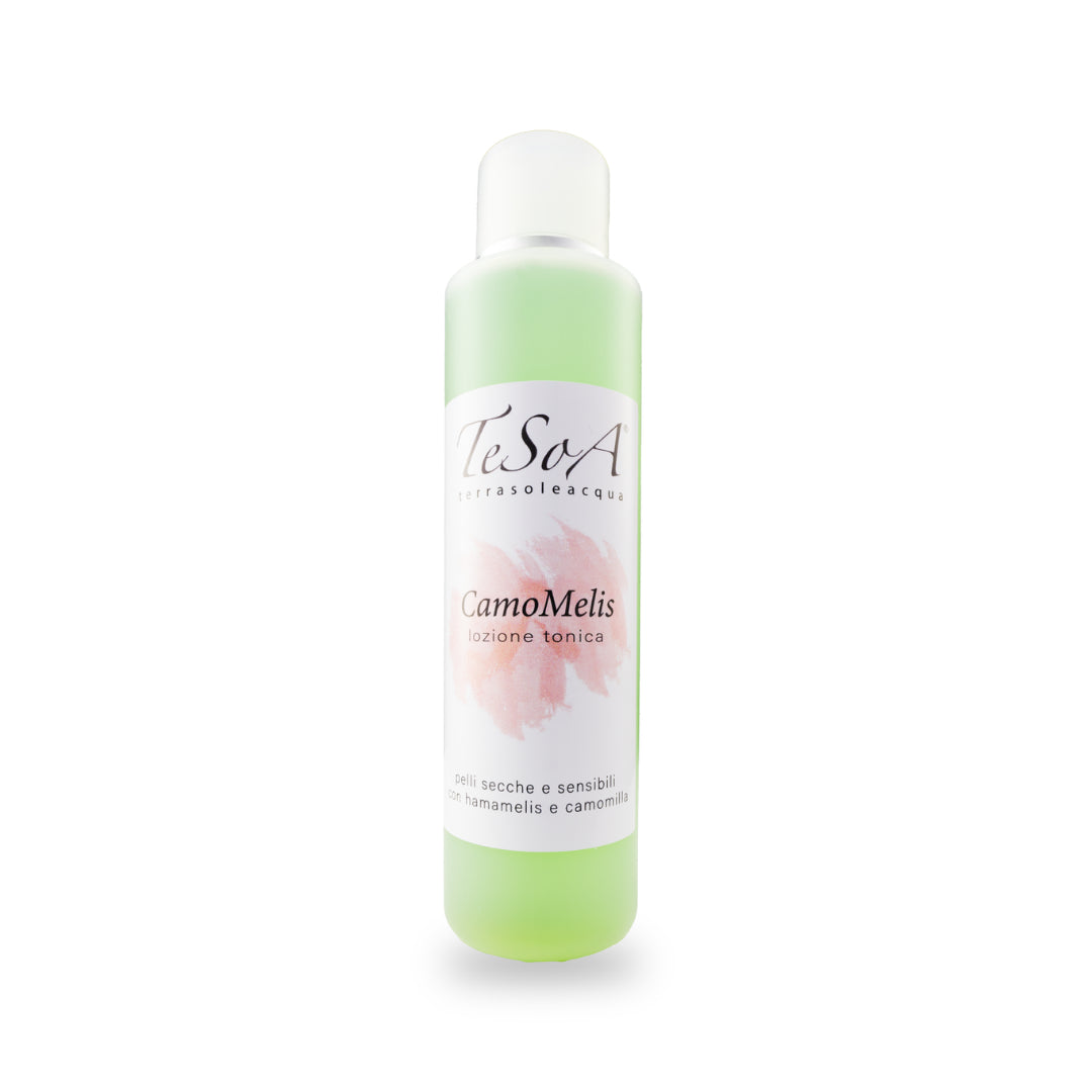 Camomelis è la lozione tonica delicata e rinfrescante pensata per purificare, lenire e ristabilire il corretto ph del viso, unendo le proprietà benefiche di Hamamelis e Camomilla.